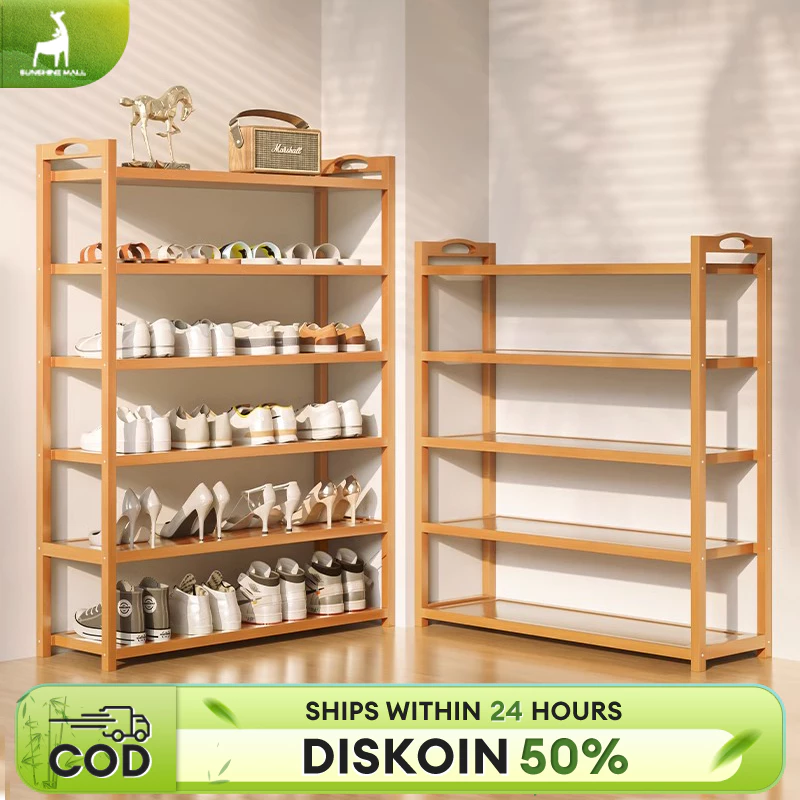 Rak Sepatu Susun Kayu Rak Bamboo Penyelenggara Rak Sandal Rak Sepatu Minimalis Serbaguna Aesthetic