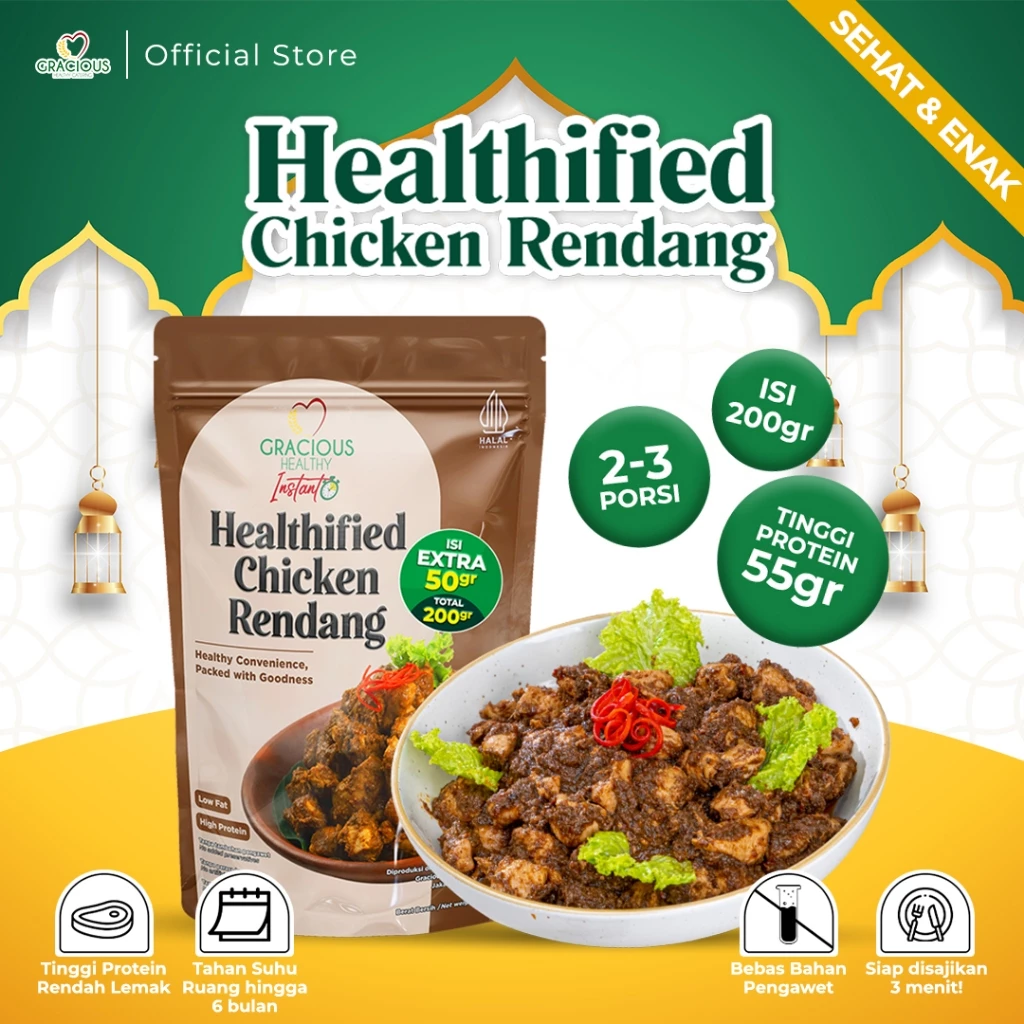 Gracious Healthified Chicken Rendang - Protein 55gr (Makanan Instant Sehat Siap Saji)